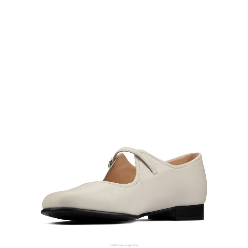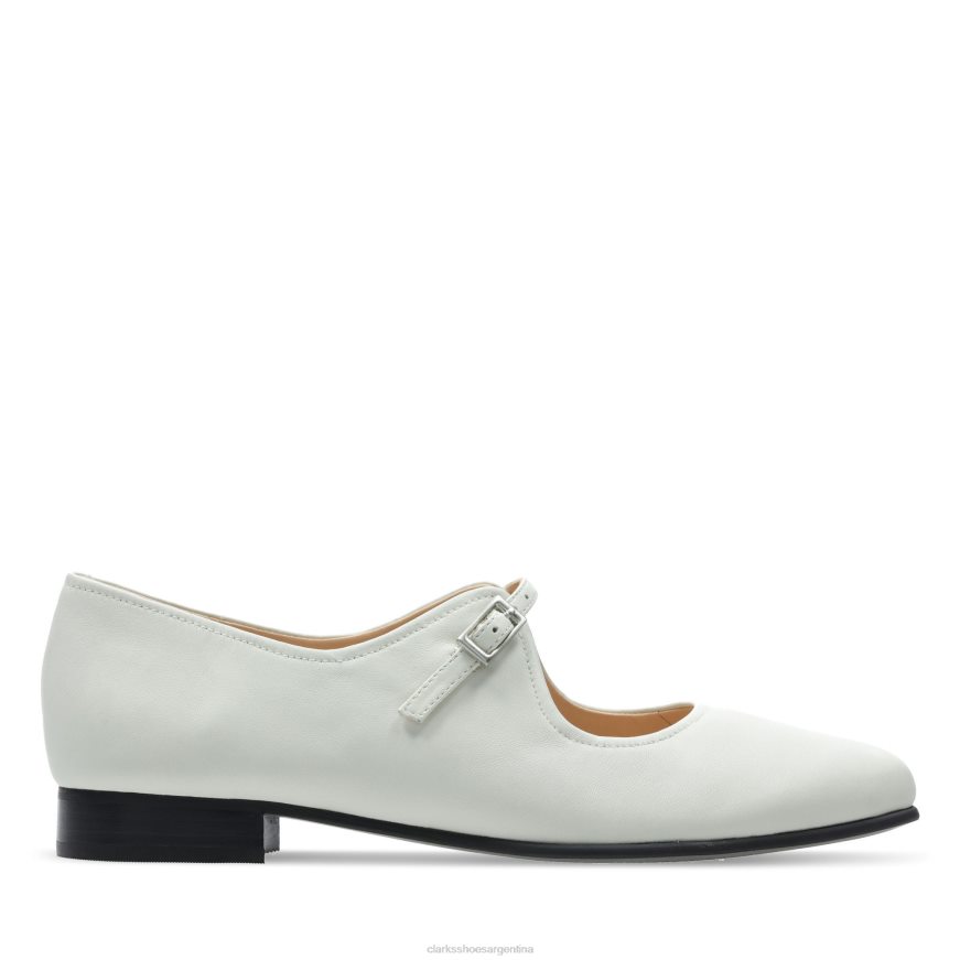 Clarks mujer Clarks de cuero blanco plano puro BPDZ203270 cuero blanco