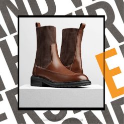 presentamos una bota atrevida con el estilo del momento: el tejido tilham. en cuero liso color canela oscuro para una sensación premium