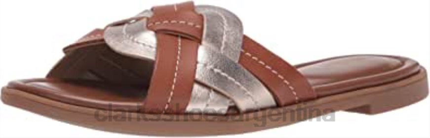Clarks mujer sandalias planas de tejido reyna para mujer clarks combinación metálica de cuero tostado BPDZ20423 combinación metalizada de cuero tostado