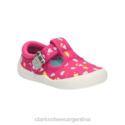 Clarks niños Tela rosa intenso de Clarks con lazo briley fst e fit BPDZ204593 tela rosa fuerte