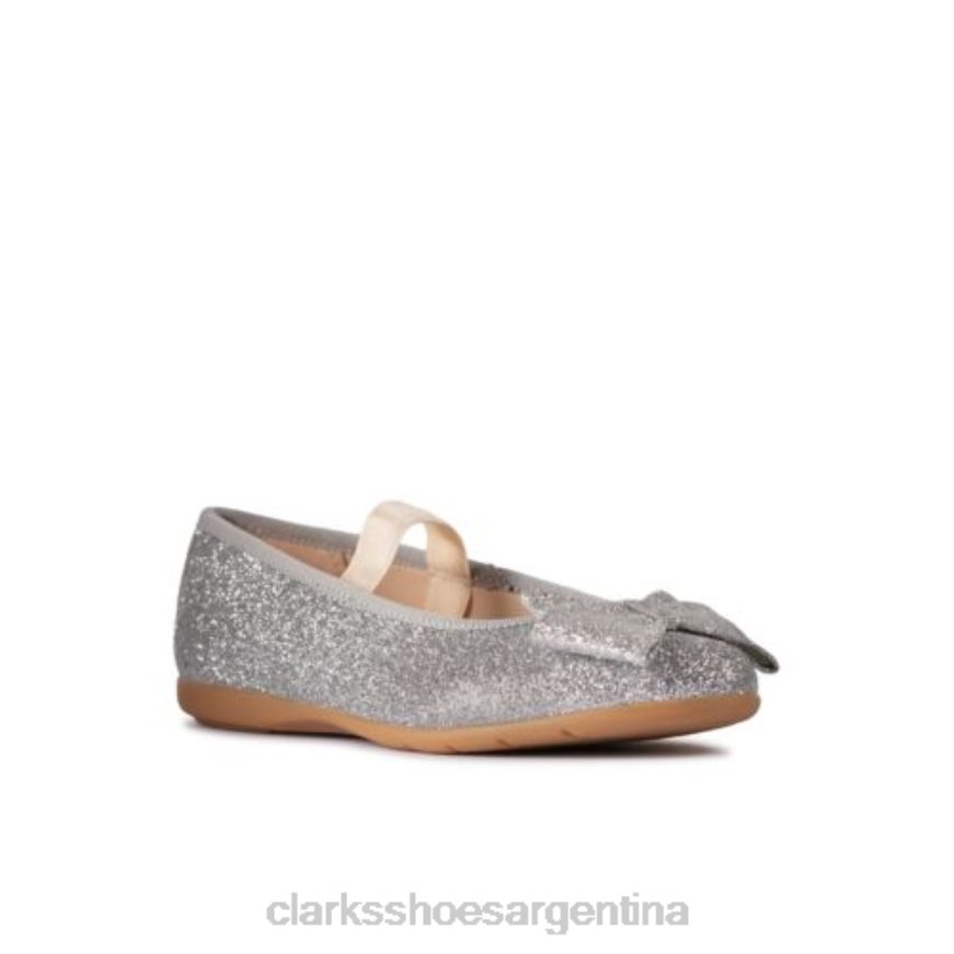 Clarks unisexo lazo de baile de cuero plateado jnr f fit clarks BPDZ204676 cuero plateado