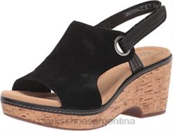 Clarks mujer Sandalia de cuña clarks giselle sea de ante negro para mujer BPDZ202856 ante negro