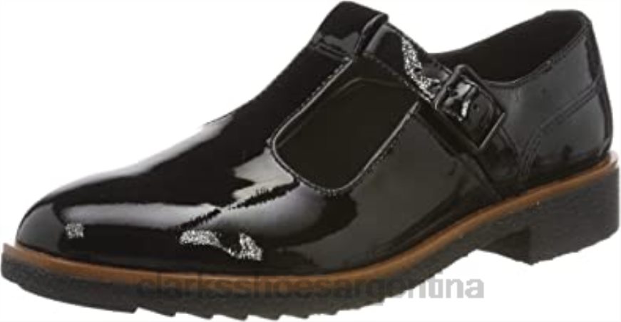 Clarks mujer Sandalias Clarks Griff Town con barra en forma de T para mujer en negro BPDZ202841 palmadita negra palmadita negra